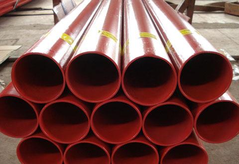 内外涂塑钢管,内外涂塑钢管是在钢管内壁融溶一层厚度为 0.5 ~ 1.0mm 的聚乙烯(PE )树脂、乙烯-丙烯酸共聚物(EAA)、环氧(EP)粉末、无毒聚丙烯( PP )或无毒聚氯乙烯(PVC)等有机物而构成的钢塑复合型管材,它不但具有钢管的高强度、易连接、耐水流冲击等优点,还克服了钢管遇水易腐蚀、污染、结垢及塑料管强度不高、消防性能差等缺点,设计寿命可达50 年。主要缺点是安装时不得进行弯曲,热加工和电焊切割等作业时,切割面应使用生产厂家配有的无毒常温固化胶涂刷,对损伤部位进行修补。